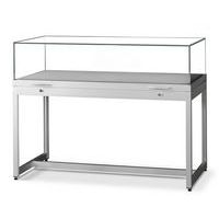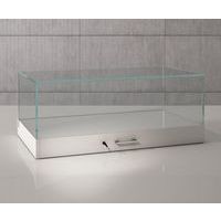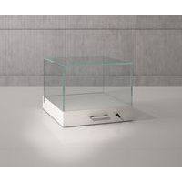 - Vetrina espositiva con campana su base, pronta per l'uso. Campana in vetro temprato, incollaggio UV sull'intero perimetro. Anta battente in vetro temprato con serratura di sicurezza. Struttura della base robusta e resistente con profilo in alluminio anodizzato. Con martinetti per la messa a livello sul pavimento.