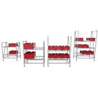 - Carrello per prelievo Flowrack FIFO con un livello per il ritorno dei vuoti in posizione inferiore. Ripiano ad inclinazione regolabile per ottimizzare il prelievo.