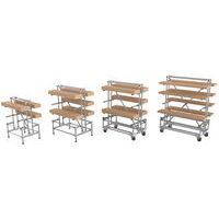 - Disponibile con 2 o 3 livelli inclinabili e barra di arresto.