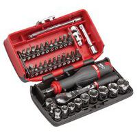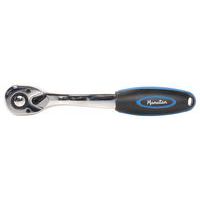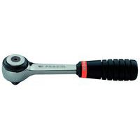 - Cricchetto 1/4 con manico ergonomico bimateriale per un maggiore comfort e una migliore presa. Meccanismo a 72 denti per una ripresa di 5°. Inversione del senso di rotazione tramite leva sulla testa. Testa compatta per facilitare l'accesso a punti difficili. Bloccaggio e sbloccaggio della bussola tramite pulsante sulla testa.