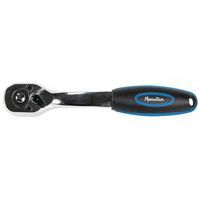 - Cricchetto 1/2 con manico ergonomico bimateriale per un maggiore comfort e una migliore presa. Meccanismo a 72 denti per una ripresa di 5°. Inversione del senso di rotazione tramite leva sulla testa. Testa compatta per facilitare l'accesso a punti difficili. Bloccaggio e sbloccaggio della bussola tramite pulsante sulla testa.