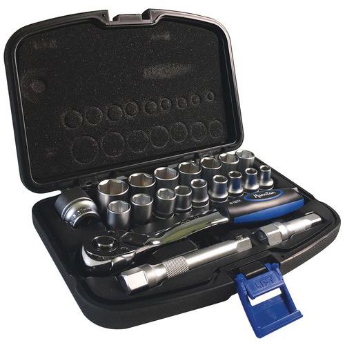I nostri set di bussole offrono una varietà di dimensioni e profili, inclusi esagonali e speciali, per adattarsi a diverse applicazioni. Le cassette modulari combinano bussole e inserti per avvitatura, fornendo una soluzione completa in un unico pacchetto. Le chiavi combinate e le chiavi a brugola completano l'assortimento, garantendo la massima flessibilità sul lavoro. Gli accessori come prolunghe e cardani aumentano la versatilità delle bussole, permettendo di raggiungere punti difficili.