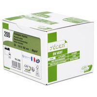 Busta bianca Era Pure. Apertura rapida, chiusura di sicurezza, striscia di protezione. Fondo della busta stampato con inchiostro resistente all'acqua. Scatola dispenser a cerniera riutilizzabile (senza colla né banda adesiva). Carta proveniente da foreste ecosostenibili, extra bianca garantita priva di cloro.