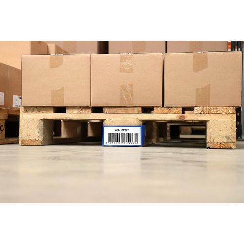 | Descrizione | Busta di identificazione logistica per piede del pallet centrale, Colore: Blu, Larghezza: 100 mm |