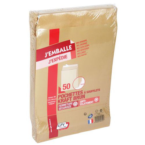 Busta in carta kraft marrone a soffietto per l'invio di libri o documenti spessi. Carta kraft resistente alla lacerazione e alla rottura. Chiusura facile e rapida grazie alla striscia adesiva con carta di protezione.