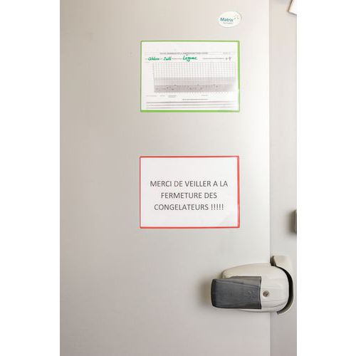 La busta per affissione magnetica Kang Easy Load si fissa su tutte le superfici metalliche. Retro completamente magnetico per una tenuta impeccabile. L'apertura sui 2 lati permette di inserire facilmente i documenti. Chiusura nell'angolo Easy load: pratica ed efficace per inserire ed estrarre i documenti. Installazione semplice e rapida, senza viti né chiodi, si stacca senza lasciare traccia. Impiego in formato orizzontale e verticale. Soluzione d'affissione per l'uso su macchine, porte, ripiani metallici, frigoriferi… Busta in PVC con retro magnetico. Può contenere fino a 10 fogli di carta da 80 g. Sfondo completamente verde.