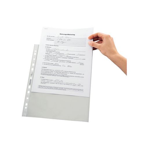 | Descrizione | Busta perforata A4 in polipropilene trasparente liscio, 75 µ, Leitz, Colore: Trasparente |