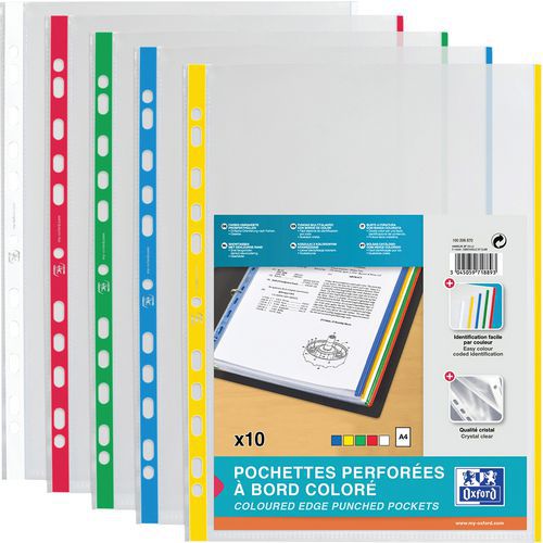 Busta perforata con bordo colorato Oxford - Confezione da 10 Busta perforata con bordo colorato Oxford - Confezione da 10