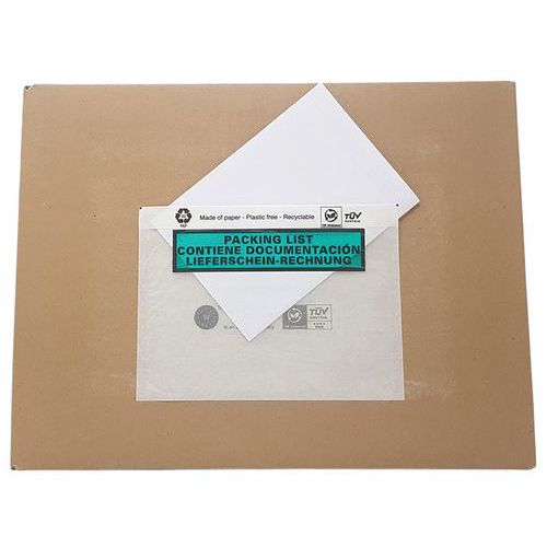 Le buste Paper List sono un articolo essenziale per proteggere e identificare i documenti con carta trasparente di qualità superiore (bolle di consegna, fatture, avvisi...) che accompagnano le spedizioni. Realizzate interamente in carta, le buste Paper List sono accessori per l'imballaggio ecocompatibili e contribuiscono infatti alla riduzione dell'uso della plastica e dell'impronta di carbonio. Queste buste di qualità sono prodotte in Francia e garantiscono, grazie alla loro forza adesiva su tutti i supporti, una consegna sicura dei documenti di spedizione. Disponibili in diverse versioni, con o senza stampa, in diverse lingue e in confezioni diverse. Realizzato in Francia Garanzia Cliente : 2 anni
