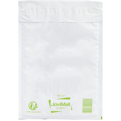 - Busta Jovimail Ecobulle in polietilene bianca imbottita con film a bolle.