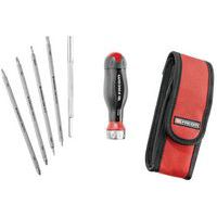 Cacciavite ergonomico 3 in 1 per un avvitamento comodo e potente. Il cricchetto a 45 denti di alta qualità garantisce velocità di avvitamento, precisione, resistenza e durata dell'utensile. Anello che permette 3 posizioni: avvitamento, svitamento e bloccaggio. Manico cacciavite bimateriale. Coppia di contraccolpo ridotta della lama. Manico del serbatoio per riporre sei punte aggiuntive da 25 mm.