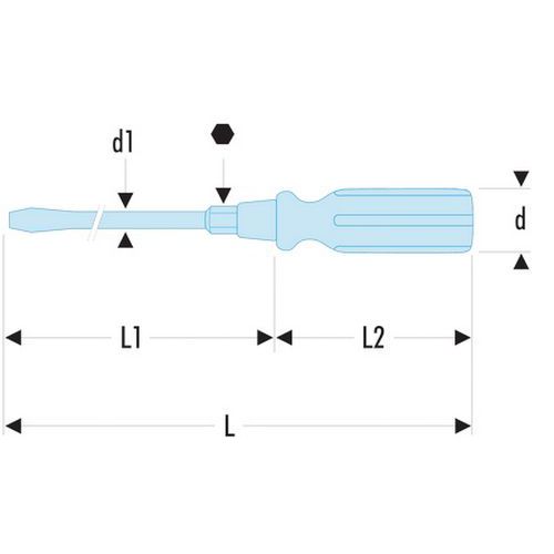 Cacciavite impugnatura in legno per viti con spacco, Cavità a vite: Presa esagonale Cacciavite impugnatura in legno per viti con spacco, Cavità a vite: Presa esagonale