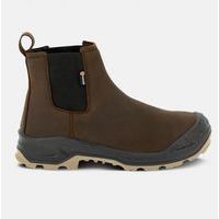 Nodica è una calzatura di sicurezza alta per uomo e donna tipo stivaletto senza lacci, facile da infilare. Certificate EN ISO 20345 : 2022 S7S SR FO. Anche con marcatura SC, LG e CI HI. Confezionate in pelle pull up doppia. Membrana impermeabile traspirante STAY DRY. Pensate per i professionisti del settore dell'edilizia e dei lavori pubblici che si muovono su terreni mobili o umidi. Dotate di un sistema di fasce adesive per impermeabilizzare le cuciture interne.