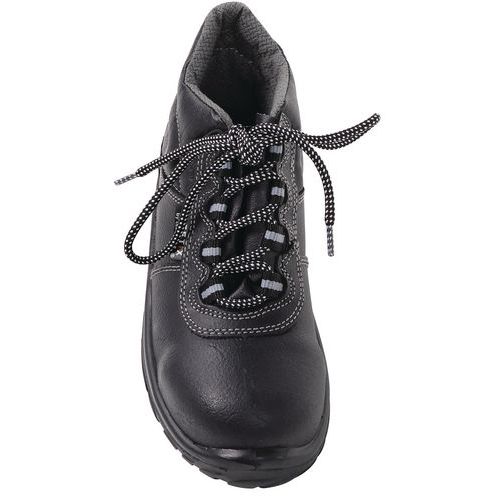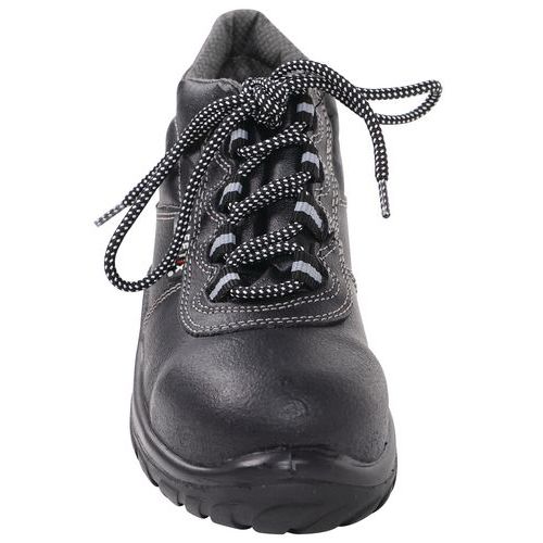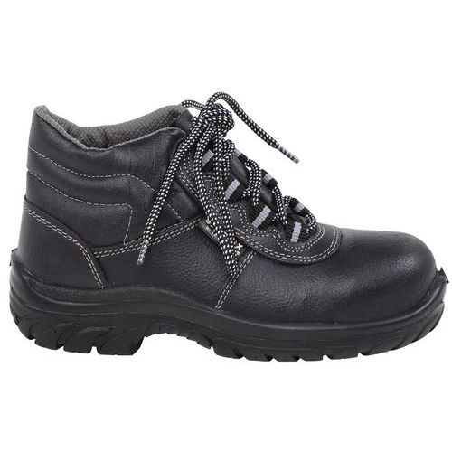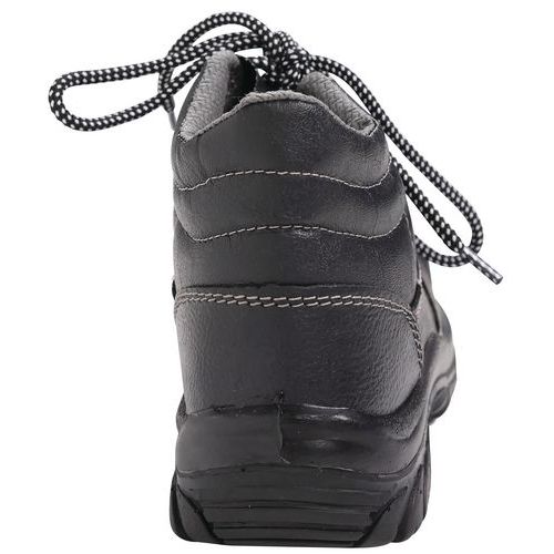 Calzature di sicurezza alte con punta di protezione in policarbonato e suola antiscivolo Tomaia in pelle martellata spessa 2-0-2,2 mm per una migliore resistenza meccanica e una maggiore durata Ideale per i pavimenti e gli ambienti industriali Suola leggera e flessibile, iniettata con PU2D antiscivolo grazie a una struttura a tasselli aperti per una migliore evacuazione dei liquidi Tacco separato per una maggiore sicurezza, in particolare sulle scale