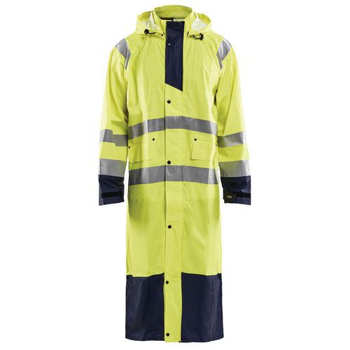 Cappotto da pioggia ad alta visibilità livello 1 giallo fluorescente/blu marino