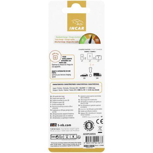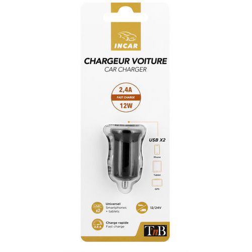 | Descrizione | Caricatore accendisigari doppio USB 2,4 A, Colore: Nero, Imballaggio riciclabile: Si - 100% |