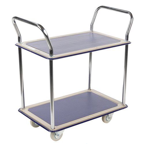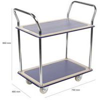 | Descrizione | Carrello a 2 ripiani, Rotella Ø: 100 mm, Portata: 120 kg, Altezza totale: 860 mm, Larghezza totale: 480 mm |