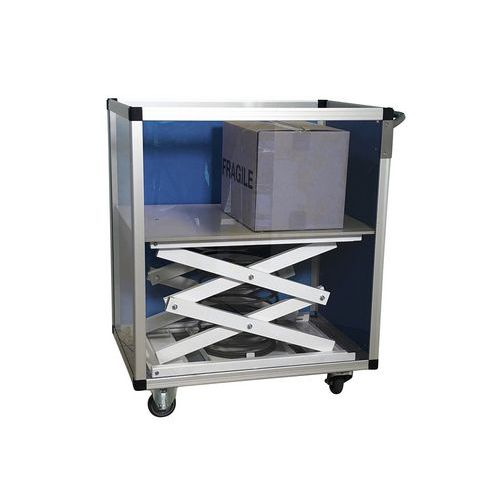 Carrello leggero e altamente maneggevole con fondo mobile per lavorare in altezza in modo ergonomico