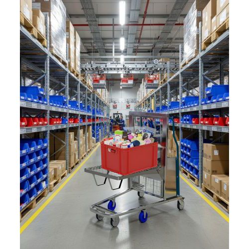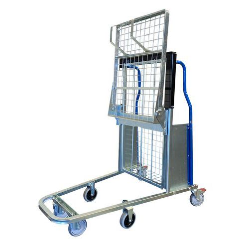 Il carrello a livello costante zincato FIMM è progettato per il prelievo di ordini e la movimentazione di pacchi, riducendo al contempo il carico e gli sforzi sulla postazione di lavoro. Il fondo mobile a molla mantiene automaticamente il carico all'altezza di presa, riducendo le flessioni ripetute dell'operatore e garantendo un comfort maggiore. Il piano ribaltabile e il design impilabile consentono di risparmiare molto spazio quando il carrello è vuoto, ideale per magazzini e officine. La finitura zincata offre una buona resistenza alla corrosione per un uso intensivo in ambiente logistico. Dotato di ruote orientabili di cui 2 con freno, conformi allo standard EN 1757, il carrello a livello costante zincato FIMM è maneggevole e sicuro durante le operazioni di prelievo, carico e scarico. Questi carrelli a livello costante zincati possono essere utilizzati nei settori di logistica, distribuzione su larga scala, servizi di spedizione/ricezione, officine di imballaggio o piattaforme di e