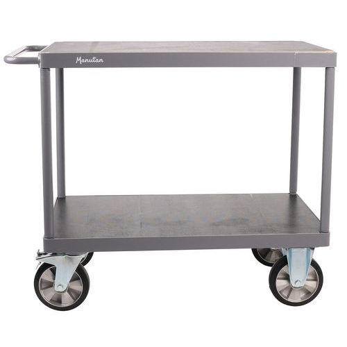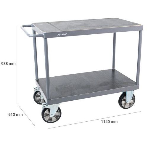 | Descrizione | Carrello acciaio con 2 ripiani legno -Portata 1200kg-Manutan Expert, Portata: 1200 kg, Altezza totale: 938 mm |