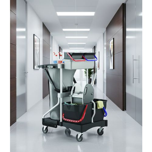 | Descrizione | Carrello Brix Light con strizzatore a pressa, Capacità: 120 L, Colore: Nero, Altezza: 122 cm |