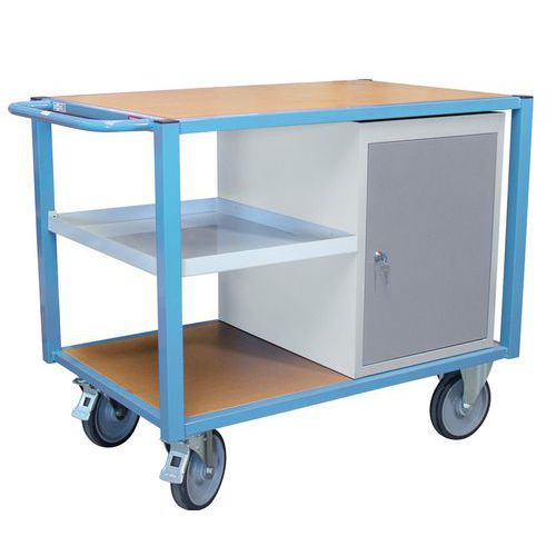 | Descrizione | Carrello con 3 ripiani e 1 armadietto, Portata: 500 kg, Altezza totale: 945 mm, Larghezza totale: 680 mm |