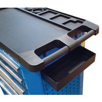 Composizione: - 1 carrello a 6 o 7 cassetti - 1 cassettiera superiore con ripiano e maniglie - 2 set di 2 chiavi per serrature centralizzate (1 carrello + 1 cassettiera) Fornito con ruote montate