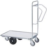 Carrello con piattaforma con maniglie verticali facile da manovrare anche con un carico pesante.