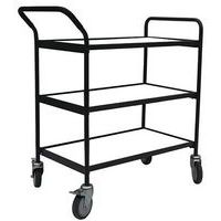 Carrello con ripiani in legno con telaio in acciaio tubolare. Ripiani in legno MDF resistenti ai carichi pesanti. Adatto a un uso intensivo. Dotato di 4 rotelle girevoli, è facile da manovrare per spostarsi facilmente anche in spazi ristretti. Finitura elegante, perfetto come espositore per i showroom ma allo stesso modo efficace in magazzino, biblioteca o officina.