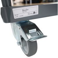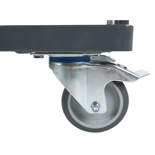 Carrello con sponda fissa a griglia con struttura robusta, telaio in acciaio e sponda con 1 pannello a griglia per una maggiore durata. Maneggevolezza e sicurezza: dotato di 2 ruote girevoli con freni e 2 ruote fisse per un'eccellente stabilità e un controllo preciso. Adattabilità delle ruote: scegliete tra ruote con copertone in poliuretano (PU) o gomma per prestazioni ottimali su diversi tipi di pavimenti.