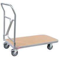- Carrello a pianale Dandy RuXXac con freno e maniglia di spinta ribaltabile.