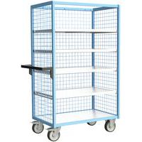 - Robusto, si distingue per il suo telaio completamente saldato. Telaio per usi intensivi interamente saldato in tubo rettangolare con sezione da 35 × 20 mm con rinforzi sottopianale. Maniglia ergonomica in altezza, in tubolare 35 × 20 mm per una buona presa. I pannelli a griglia da 50 × 50 mm offrono la massima libertà di posizionamento per i ripiani. Carico utile per ripiano su richiesta 100 kg.