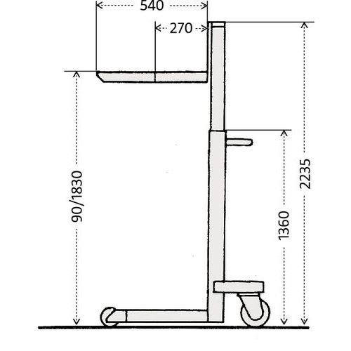 | Descrizione | Carrello elevatore a doppio palo telescopico, Portata: 250 kg, H sollevamento max.: 1830 mm |