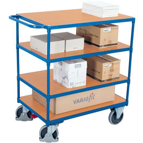 Carrello ergonomico con 4 ripiani in legno - Maniglia orizzontale - Capacità 500 kg