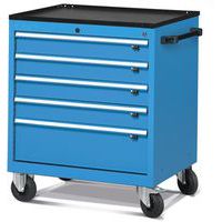- Carrello da officina robusto con telaio in acciaio, grigio scuro RAL 7015. Massima sicurezza grazie alla serratura centralizzata a chiave. Stabilità grazie alle ruote ottimizzate, 2 fisse + 2 girevoli con freno. Massimo comfort d'uso con impugnatura su 1 dei 2 lati.
