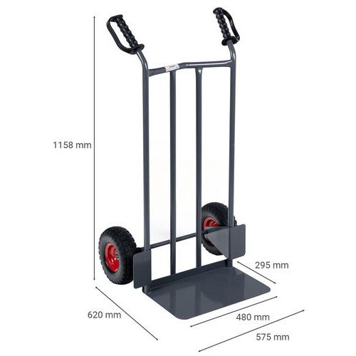 Carrello in acciaio 250 kg con pala fissa - Ruote antiforatura - Manutan Expert