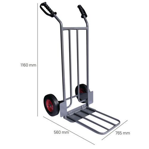 | Descrizione | Carrello in acciaio 250 kg, Portata: 250 kg, Altezza totale: 1160 mm, Rivestimento ruota: Gomma piena |