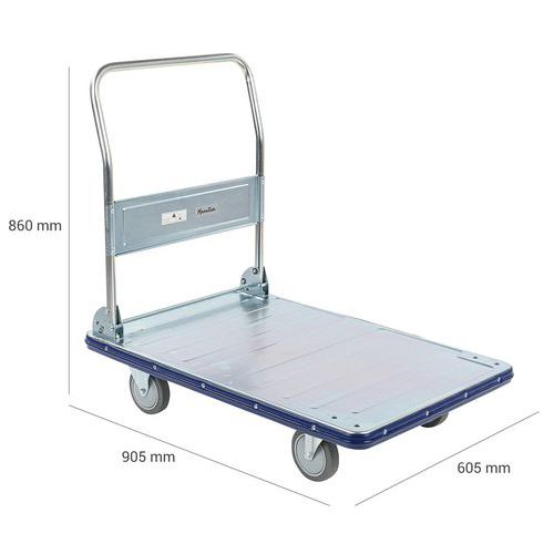 Carrello in acciaio con sponda ribaltabile, Portata: 350 kg, Altezza totale: 860 mm, Larghezza totale: 605 mm