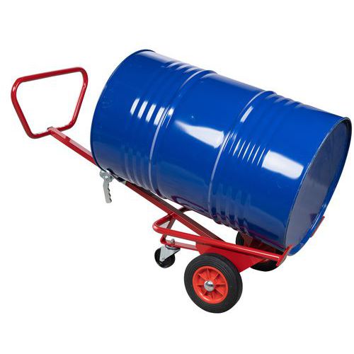 Carrello in acciaio ergonomico per fusti 350 kg - Ruote in gomma