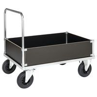 | Descrizione | Carrello in acciaio galvanizzato - 4 sponde basse a pannelli in legno - Portata 500 kg |
