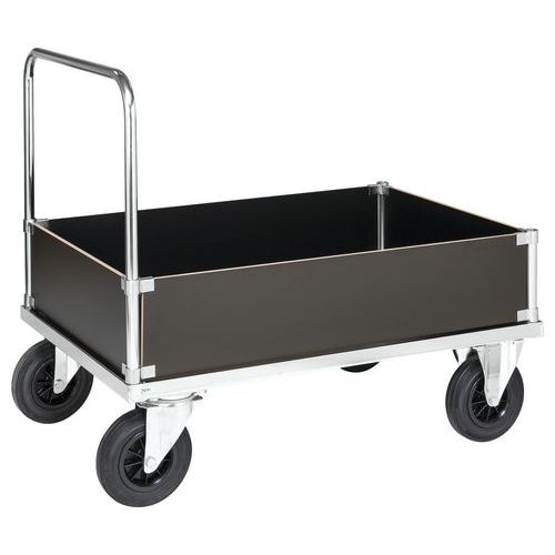 Carrello in acciaio galvanizzato - 4 sponde basse a pannelli in legno - Portata 500 kg