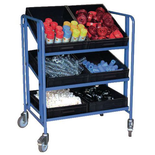Carrello in acciaio inclinabile per contenitori - da 3 a 5 ripiani - con contenitori