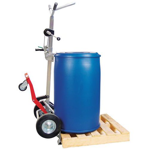 | Descrizione | Carrello in acciaio per fusti 350 kg, Portata: 350 kg, Modello: Automatico, Larghezza totale: 555 mm |