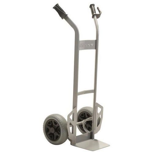 | Descrizione | Carrello in acciaio, Portata: 200 kg, Altezza totale: 1075 mm, Rivestimento ruota: Pneumatico antiforatura |