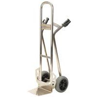 - Carrello in acciaio inox 250 kg, dotato di pala fissa e ripiegabile: ideale per l’industria agroalimentare o chimica e particolarmente indicato per carichi cilindrici.