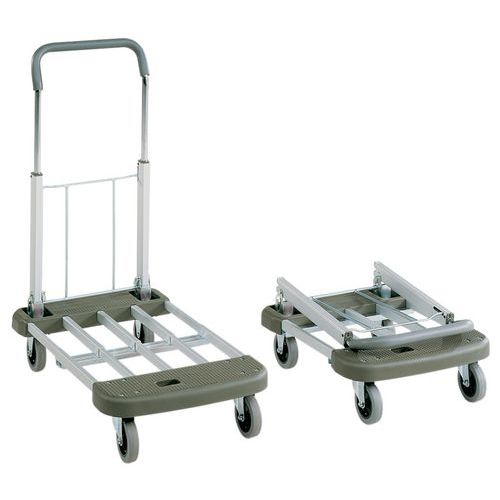 | Descrizione | Carrello in alluminio e plastica pieghevole, Portata: 150 kg, Altezza totale: 930 mm |