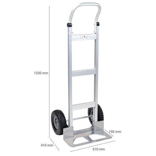 Carrello in alluminio, Portata: 150 kg, Rivestimento ruota: Pneumatico, Ø Ruota: 200 mm, Tipo di pala: Fissa
