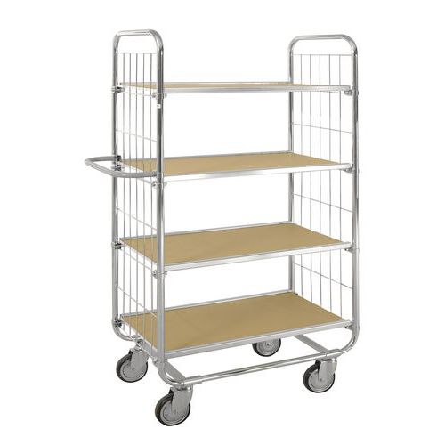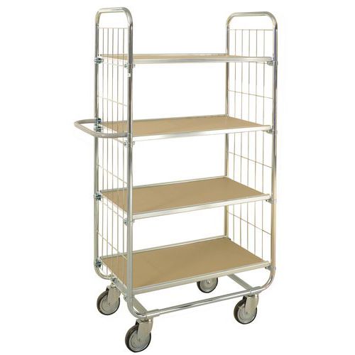| Descrizione | Carrello in filo d'acciaio con ripiani in metallo ESD - 4 ripiani - Portata 250 kg |