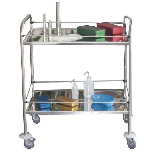 Carrello in inox con ringhierine - 2 ripiani - Portata 60 kg