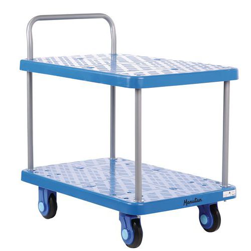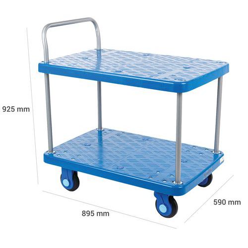 | Descrizione | Carrello in plastica con 2 ripiani, Portata: 300 kg, Altezza totale: 925 mm, Larghezza totale: 590 mm |